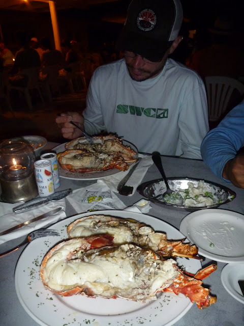 The last thing we decided to do on the trip was to actually buy a meal. A decision that made us hypocrites for lamenting all the dead sharks used as lobster bait. Wearing skinny water microfibers coated in all sorts of fishiness, we scarfed down the best lobster I ever had. When a heavy down poor came, the other diners (dressed to impress) ran for cover. I simply sat and ate, while I enjoyed my first shower in 8 days.