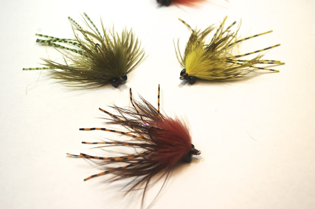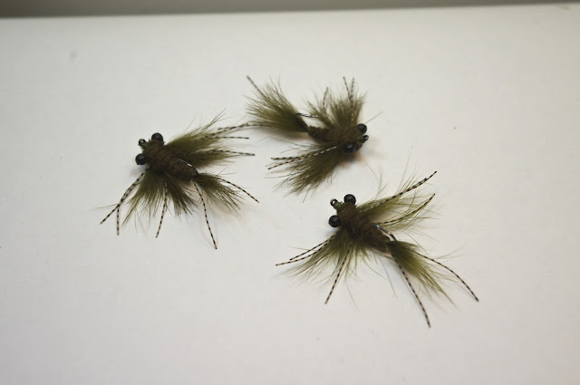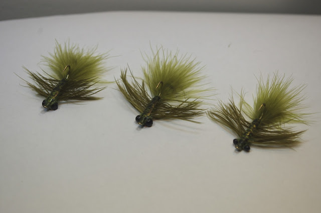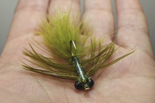 This is a modified woolly bugger tied to somewhat resemble a damsel/dragon. The Schlappen on either side is meant to slow its descent and create a parachute affect. This pattern is tied in three different styles: Light, Medium, and Heavy. The light and medium weight patterns can be fished in the middle of the water column. The light is designed to hover and descend slowly. The medium will sink slow but can be stripped in the column for more aggressive fish. The heavy is designed to be fished on the bottom. This can be tied large or small depending on the scenario. Very versatile.
