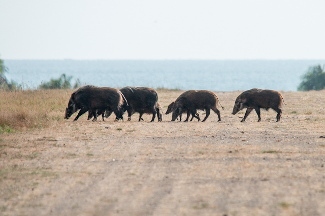 A stereotypical Land Rover was waiting for us in the “arrival, waiting and departure lounge”. This family of bushpigs strolled across the runway a few minutes after landing. The largest was over 150lb.