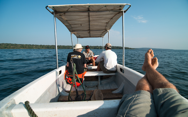 Rubondo has a healthy population of a few species of African mammals. Many of them were transplanted to the island between the 1950s and 1980s. There are now nearly 40 elephants, and we were lucky enough to stumble upon one huge male, drinking from the lakeshore, during our walk back to the lodging one evening. That night, we used headlamps to watch him tear the forest down just outside of our bedroom windows. We could sense his footsteps through the floor, and feel him breathing in our lungs like an ultrasonic bass beat.