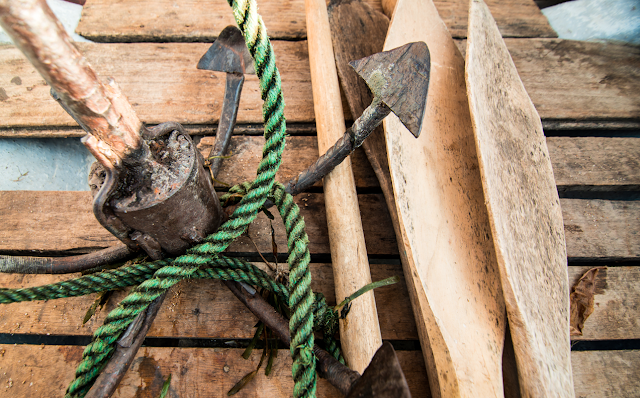 The island’s forest is largely intact, and looking at it from the water it is not difficult to imagine having been sent back in time a thousand years. That illusion fades when you glimpse the first set line or croc entangled in netting.