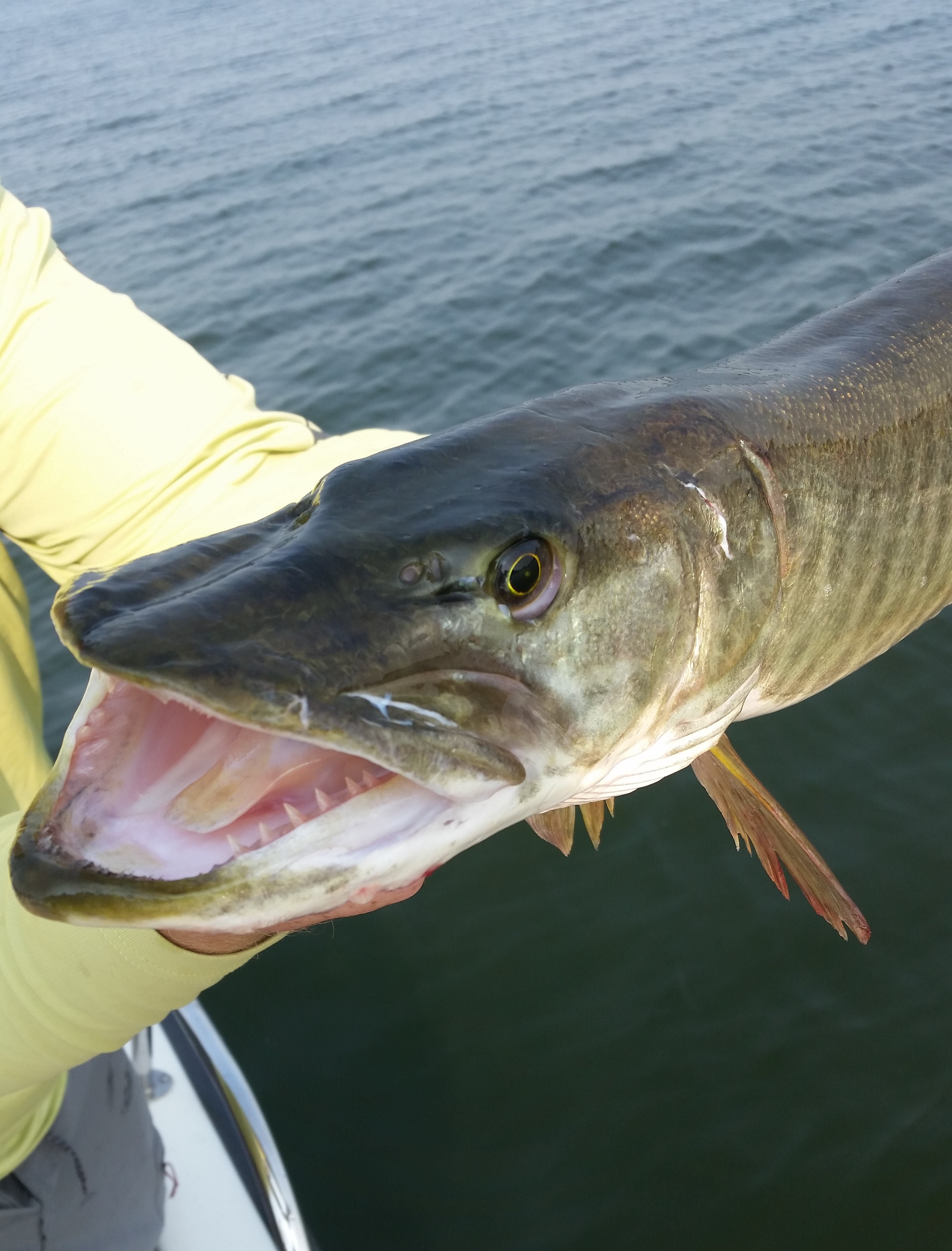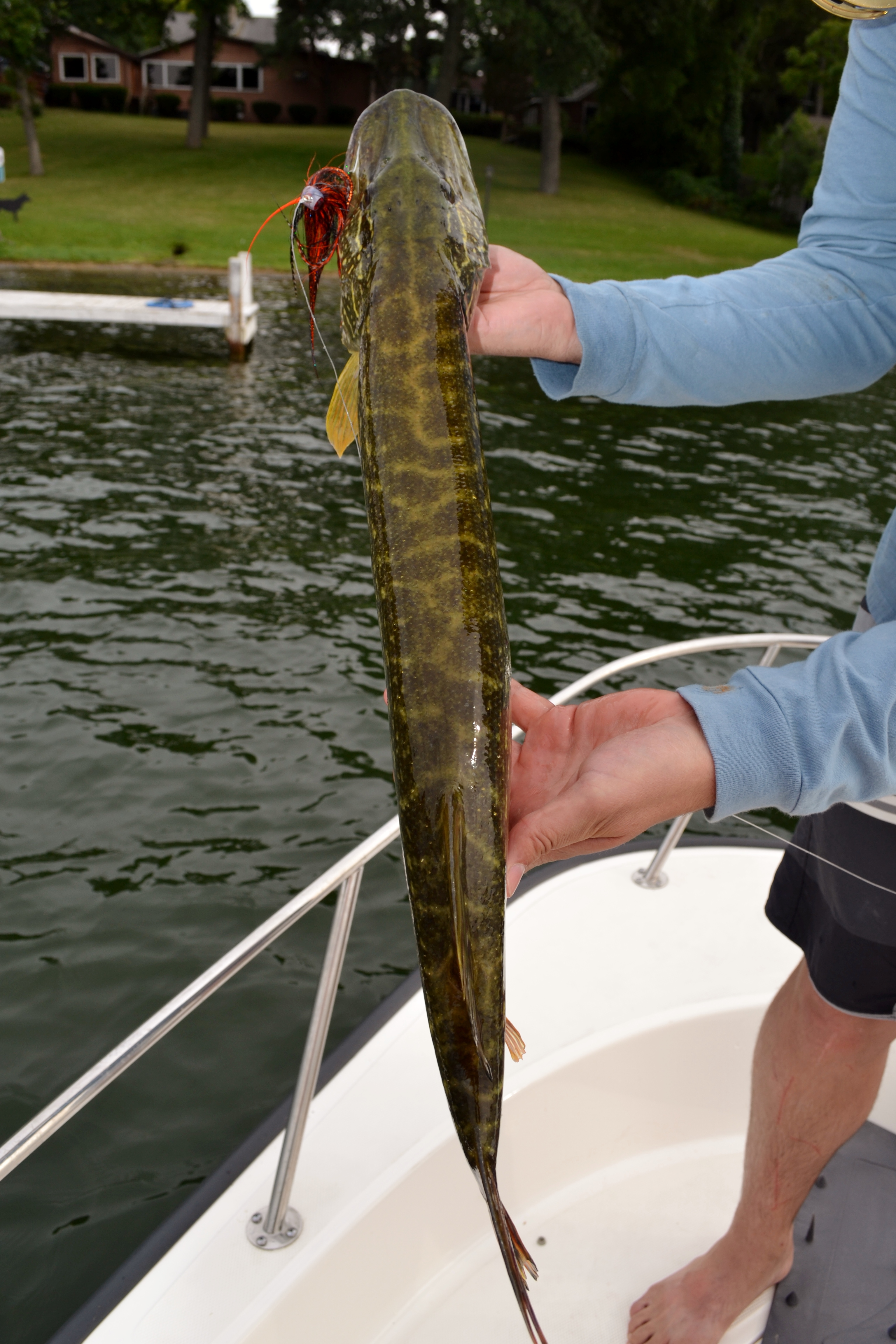 The past few weekends I have been trying to figure out the whole pike/musky situation on SE Wisconsin’s Lake Delevan. These fish are defiantly plentiful but also very picky. The added weekend boat traffic and the fact that we are hurling huge flies at these fish doesn’t make the situation any easier. But, every weekend we are out there we are seeing more patterns develop. Standing on top of a Yeti, that’s on top of center council, while boats go racing by pulling skiers and tubes sure does get some funny reactions from people. But we are not there to fit the normal fishing profile…